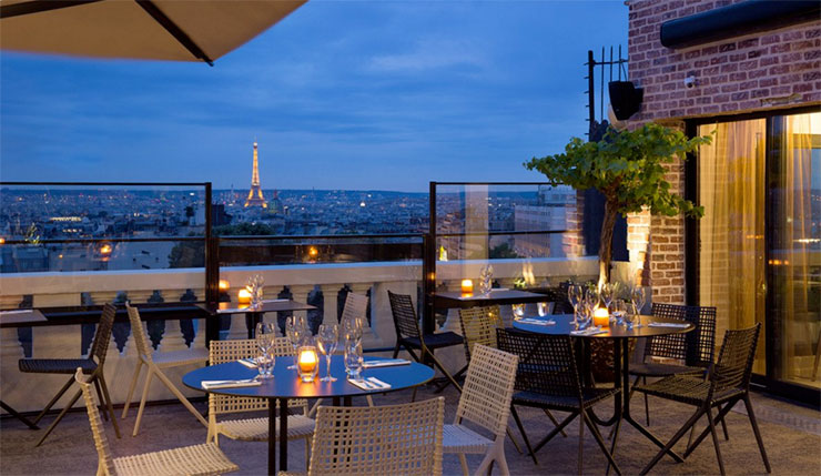 Was könnte romantischer sein als ein Blick über die „Stadt des Lichts" bei Nacht ? Die Bar in der 7ten Etage, ganz oben auf dem Dach des Terass Hotels in Montmartre thronend, eröffnet Ihnen einen wundervollen Panoramablick über die Dächer von Paris - entweder vom Innenraum aus mit seinen Panoramascheiben oder von der romantischen, bewirtschafteten Terasse. Ein geradezu perfekter Ort, um beim Tête-à-Tête einen Cocktail zu trinken - zum Beispiel einen „Passionnément" (Leidenschaftlich) auf der Grundlage von Bourbon, Passionsfruchtsirup und Limette - und dabei zuzusehen, wie die Sonne hinter dem Invalidendom, dem Eiffelturm und dem Grand Palais versinkt...