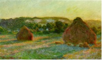 The Haystacks (Les Meules) correspond to a series of paintings at the end of the 1890 summer harvest up to the end of the summer in 1891. The haystacks are in the middle of a field near Monet’s Giverny house.